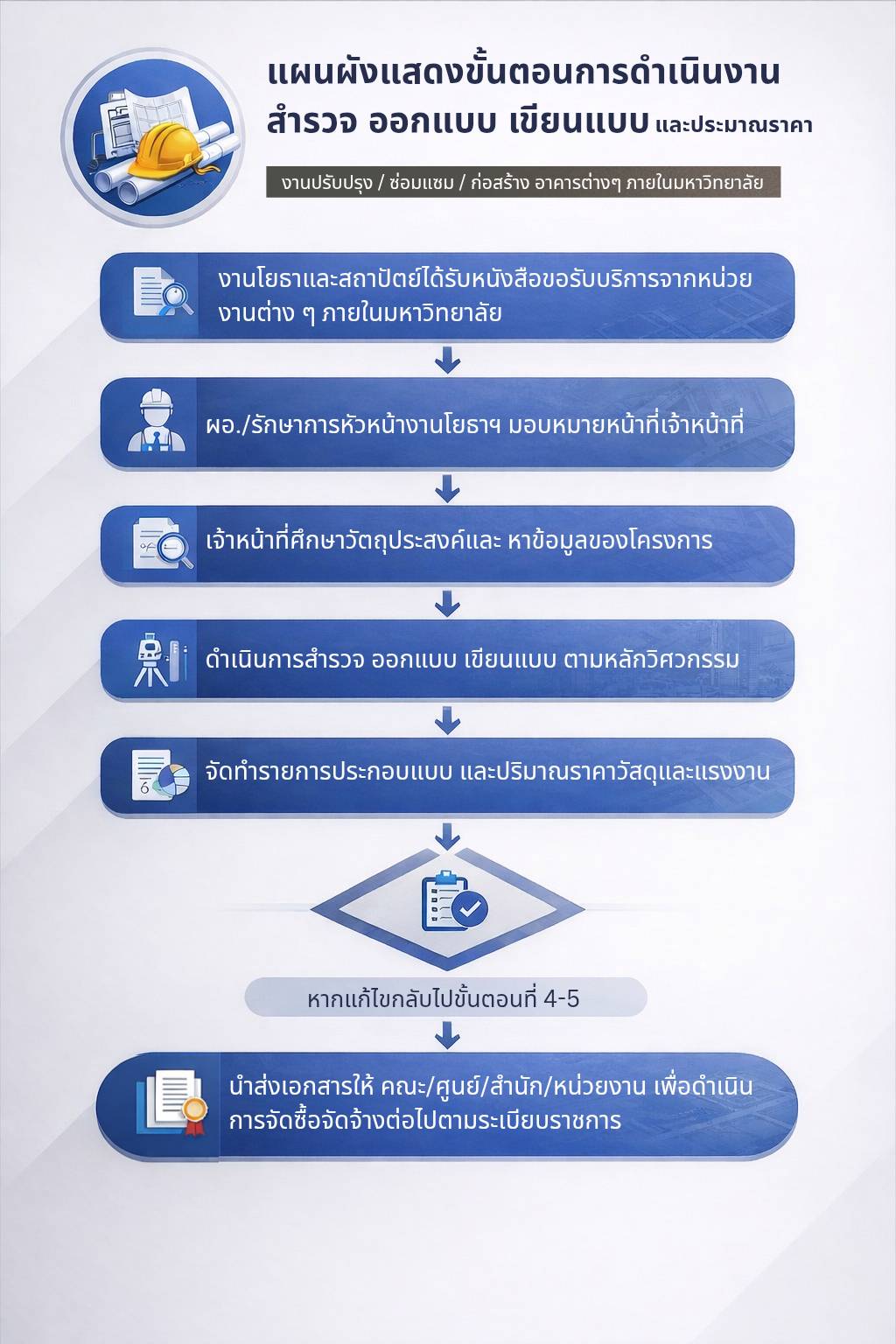 - หนังสือแจ้งขอรับบริการสำรวจ ออกแบบ และประมาณราคาหน่วยงายภายในมหาวิทยาลัยฯ